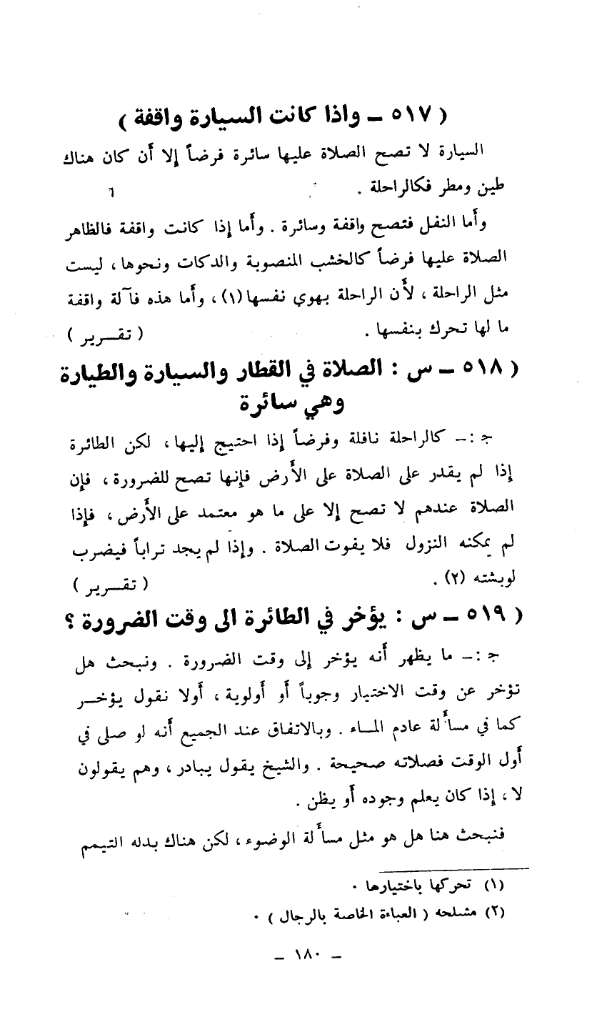 (518- س: الصلاة في القطار والسيارة والطيارة وهي سائرة)