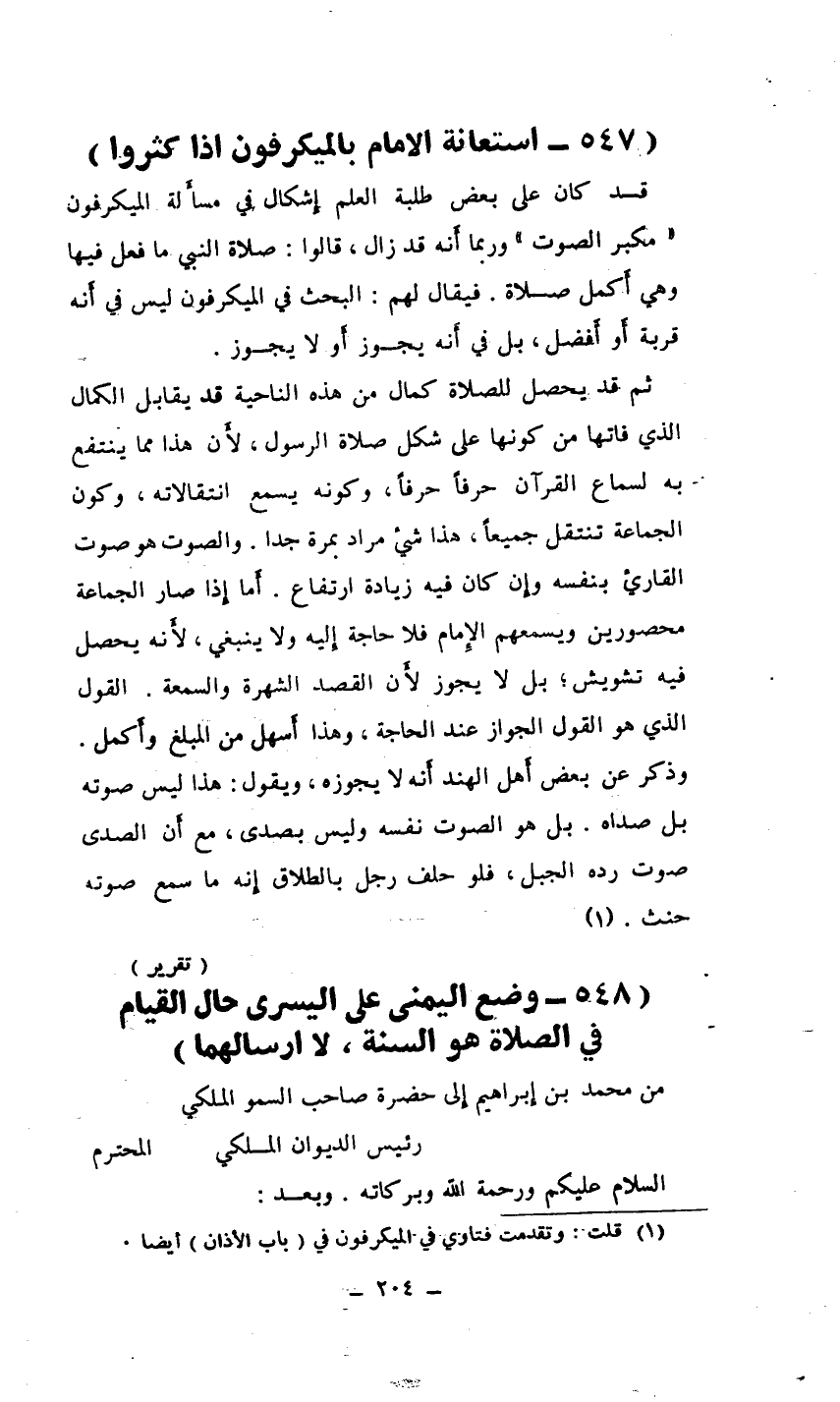 (¬1) قلت: وتقدمت فتاوي في الميكرفون في (باب الأذان) أَيضا.