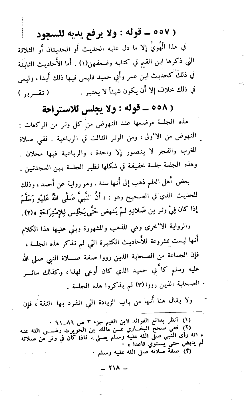في هذا الْهُويِّ إِلا ما دل عليه الحديث أَو الحديثان أَو الثلاثة التي ذكرها ابن القيم في كتابه وضعفهن (¬1) . أَما الأَحاديث الثابتة في ذلك كحديث ابن عمر وأَبي حميد فليس فيها ذلك أَبدًا، وليس في ذلك خلاف إِلا أَن يكون شيئًا لا يعتبر. ... (تقرير)