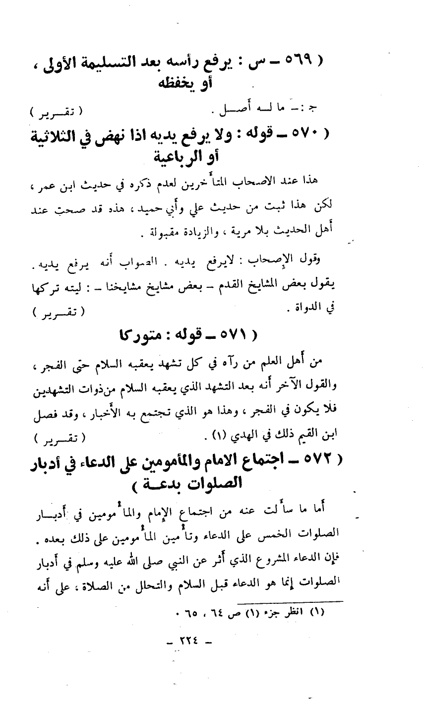 (572- اجتماع الامام والمأمومين على الدعاء في أَدبار الصلوات بدعة)
