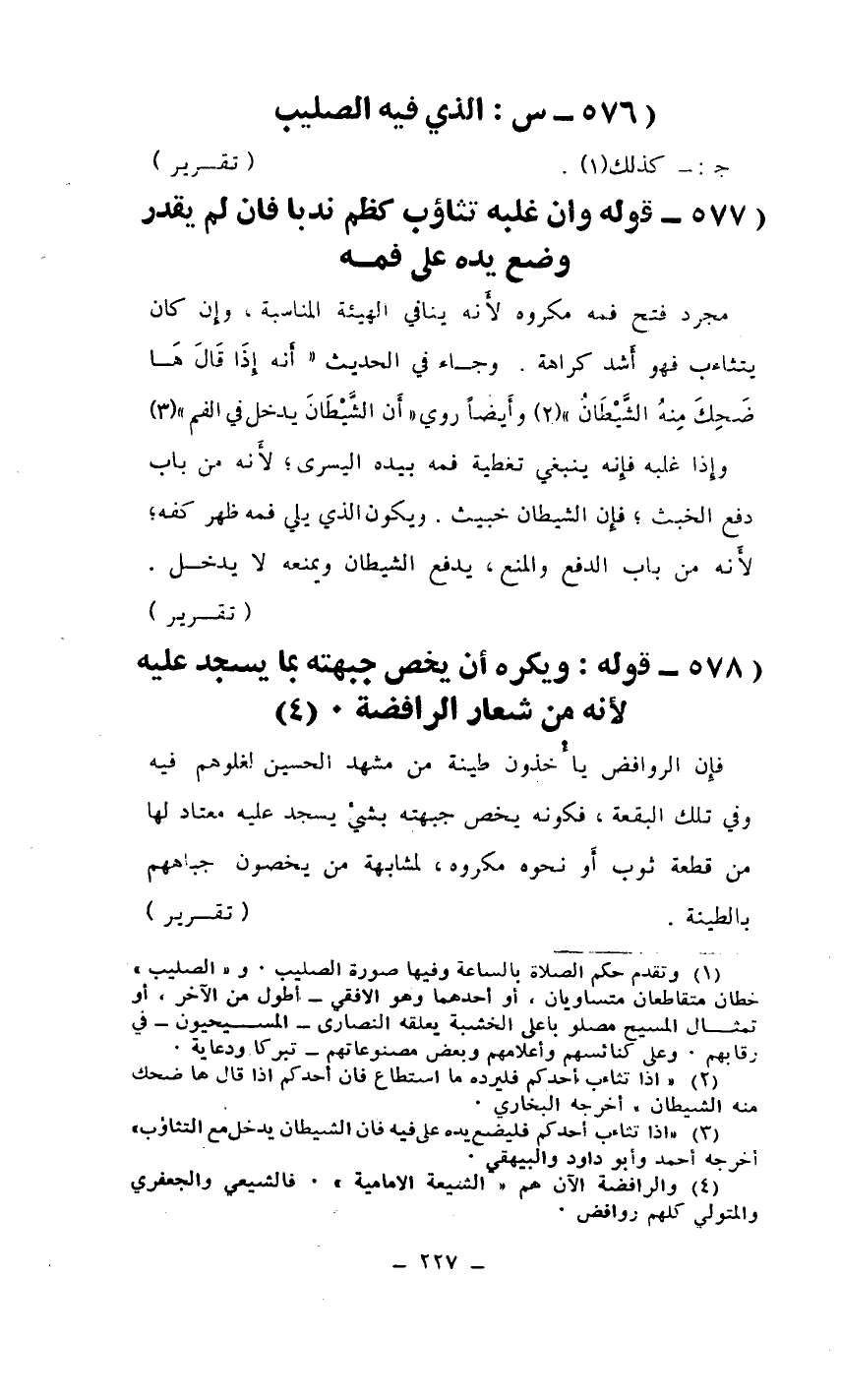 (577-قوله وان غلبه تثاؤب كظم ندبا فان لم يقدر وضع يده على فمه)