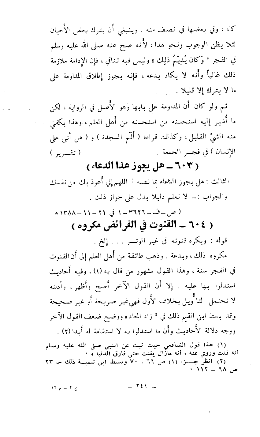 (604- القنوت في الفرائض مكروه)