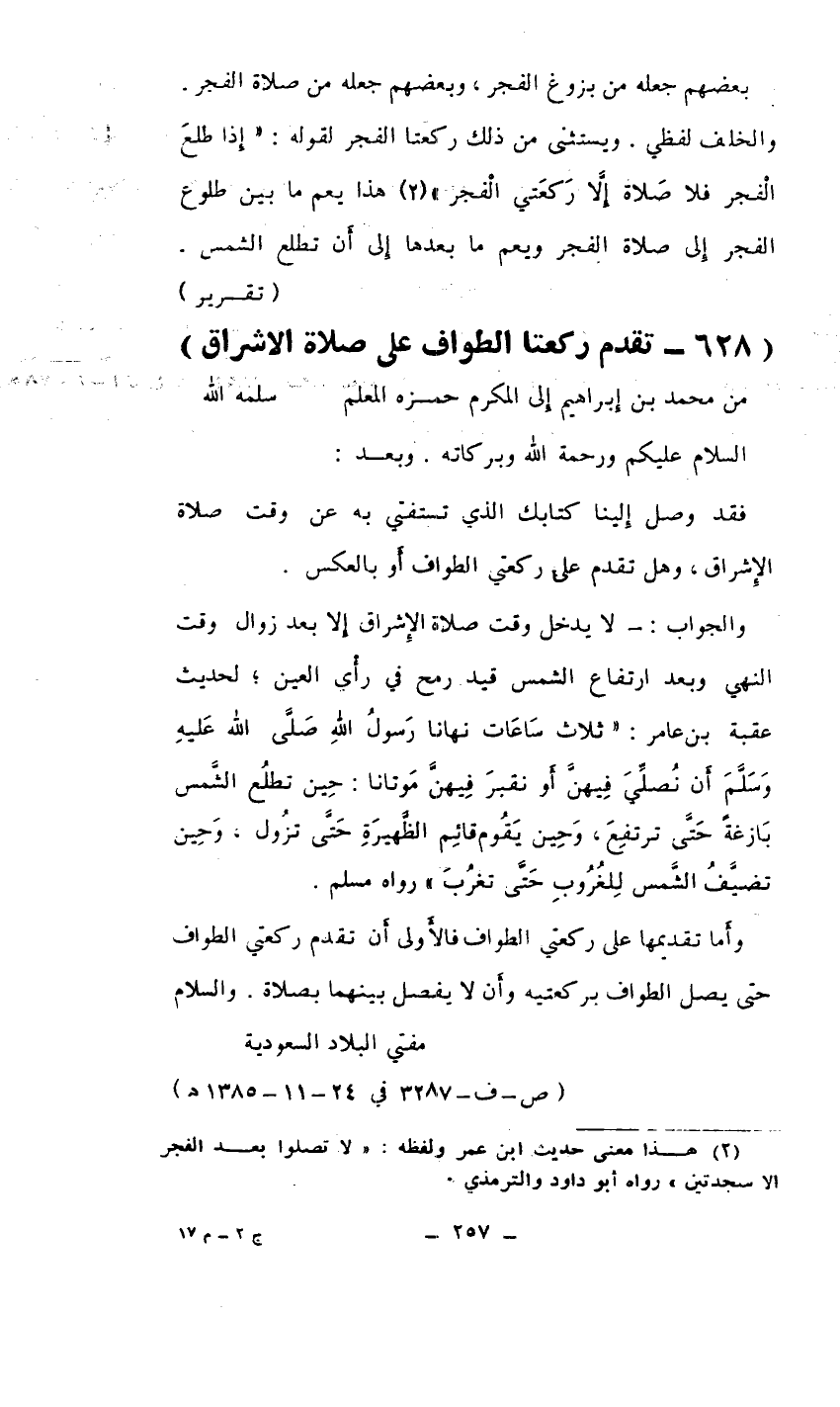 628- تقدم ركعتا الطواف على صلاة الإشراق