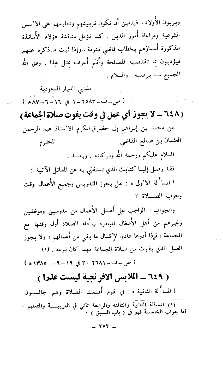 648 - لا يجوز أي عمل في وقت يفوت صلاة الجماعة