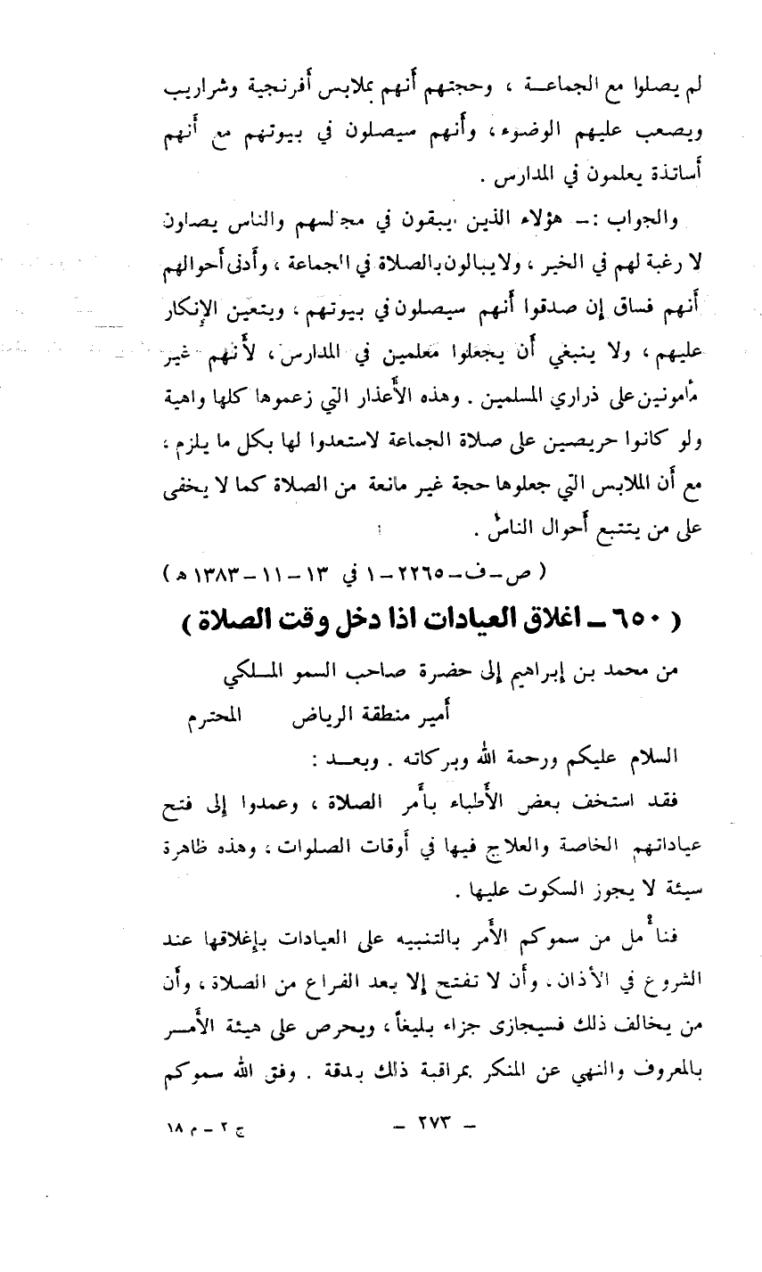 من محمد بن إبراهيم إلى حضرة صاحب السمو الملكي