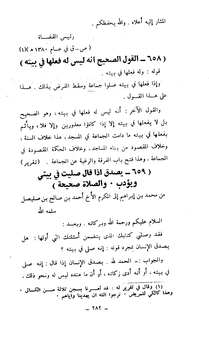 فقد وصلني كتابك الذي يتضمن أسئلتك التي أولها: هل يصدق الإنسان بمجرد قوله: إنه صلى في بيته؟