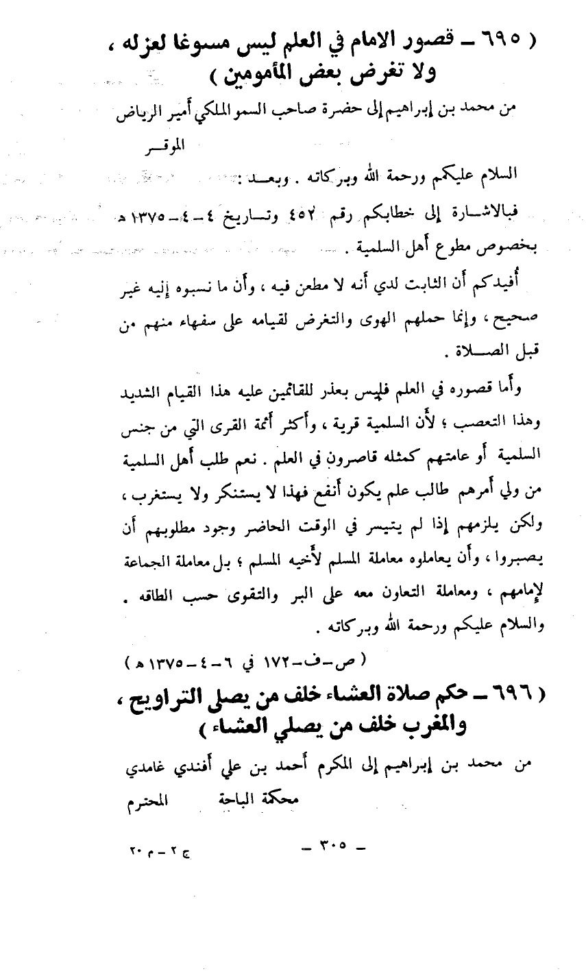 فبالاشارة إلى خطابكم رقم 452 وتاريخ 4/4/1375هـ بخصوص مطوع أهل السلمية.