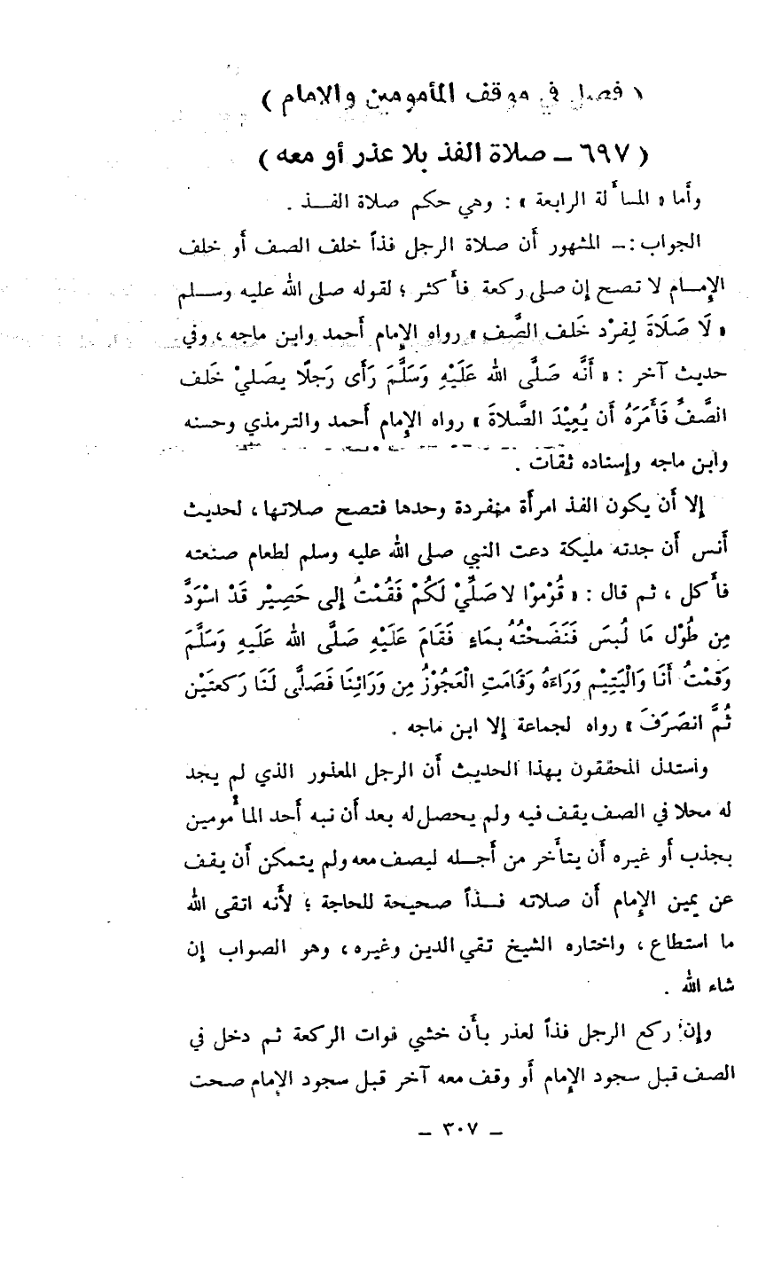 (697 ـ صلاة الفذ بلا عذر أو معه)