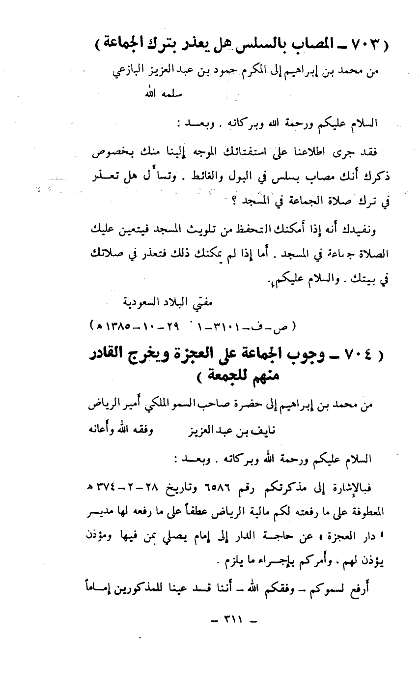 (703 ـ المصاب بالسلس هل يعذر بترك الجماعة)