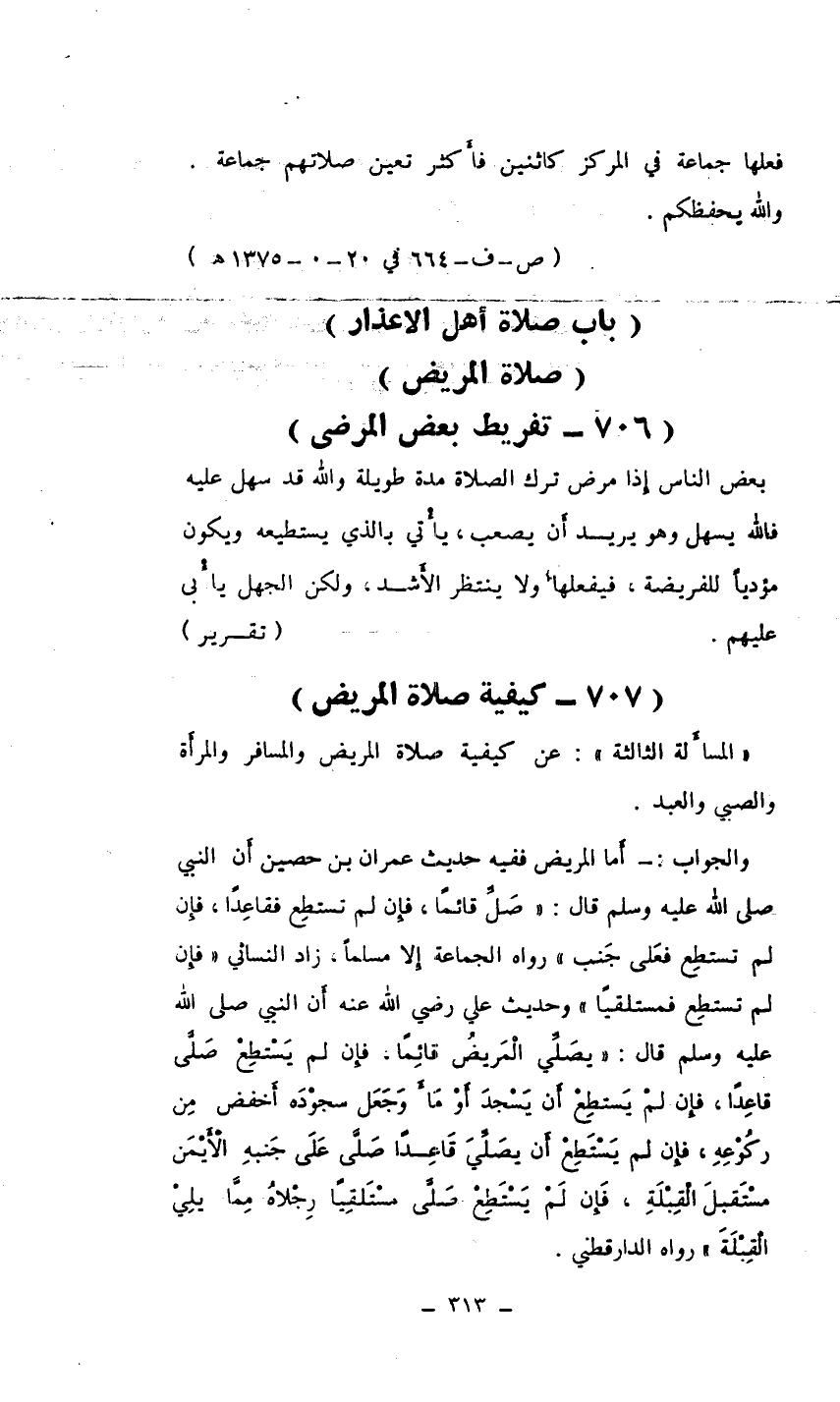 (706 ـ تفريط بعض المرضى) بعض الناس إذا مرض ترك الصلاة مدة طويلة والله قد سهل عليه فالله يسهل وهو يريد أن يصعب، يأتي بالذي يستطيعه ويكون مؤدياً للفريضة، فيفعلها ولا ينتظر الأشد، ولكن الجهل يأبى عليهم. (تقرير)