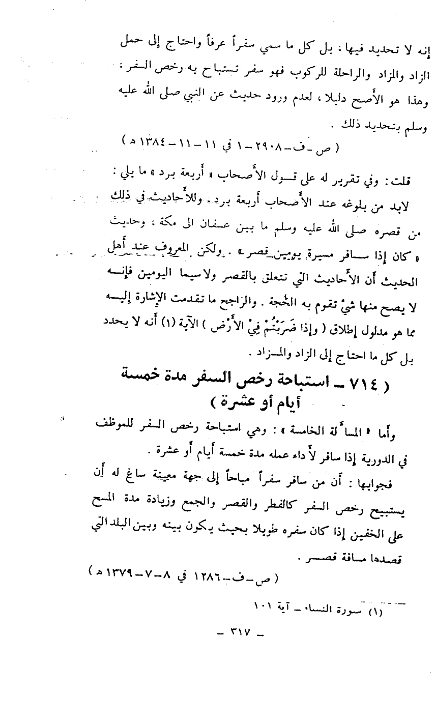 (714 ـ استباحة رخص السفر مدة خمسة أيام أو عشرة)