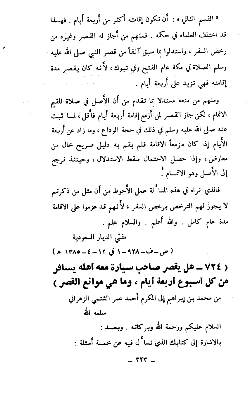(724 ـ هل يقصر صاحب سيارة معه أهله يسافر من كل أسبوع أربعة أيام، وما هي موانع القصر)