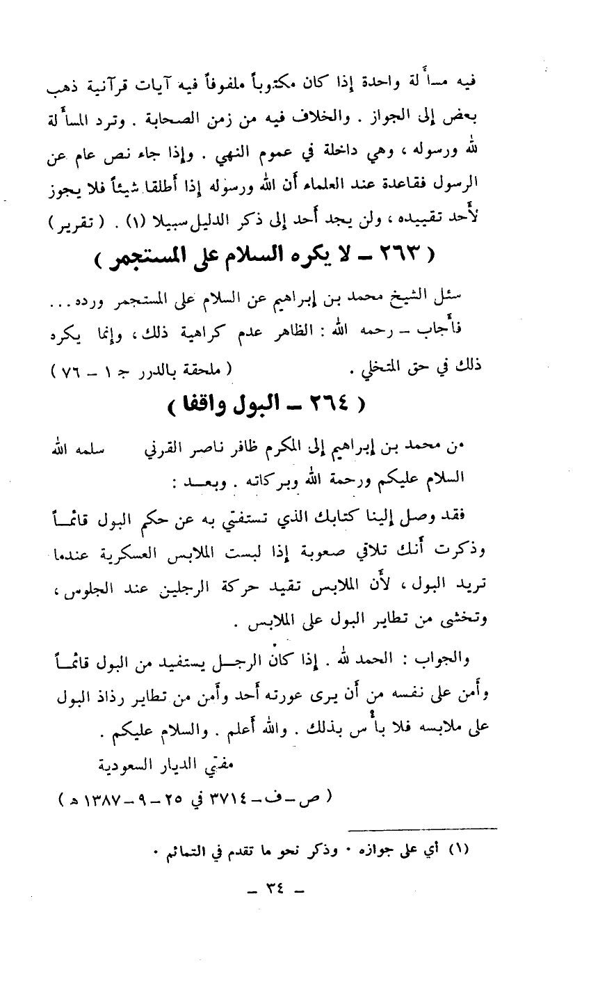 سئل الشيخ محمد إبراهيم عن السلام على المستجمر ورده ...