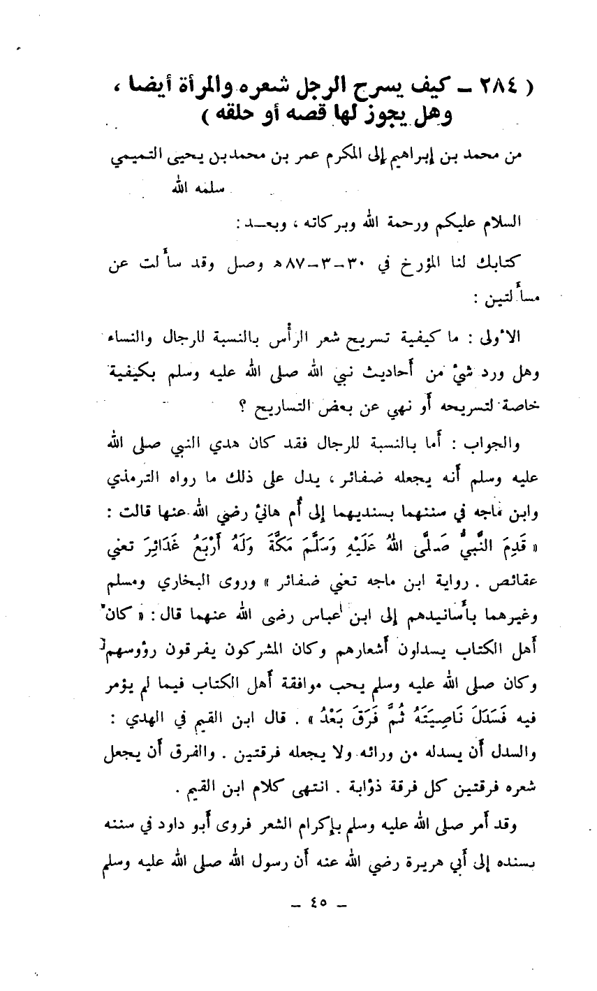 (284- كيف يسرح الرجل شعره والمرأة أيضًا، وهل يجوز لها قصه أو حلقه)