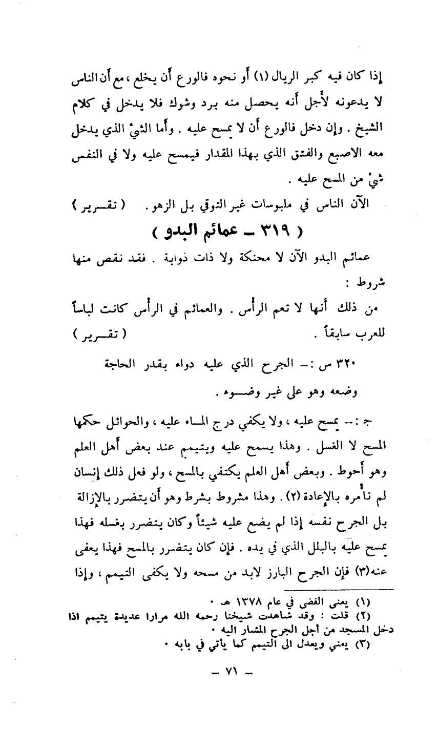 320 س: - الجرح الذي عليه دواء يقدر الحاجة