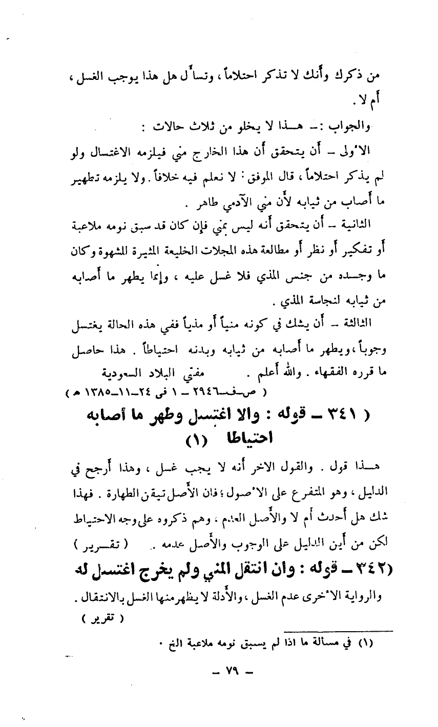 من ذكرك وأَنك لا تذكر احتلامًا، وتسأَل هل هذا يوجب الغسل، أَم لا.