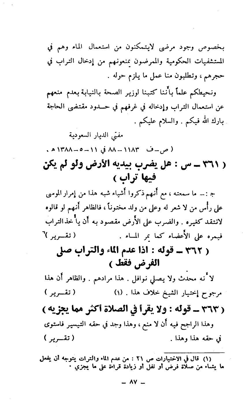 (361- س: هل يضرب بيديه الأَرض ولو لم يكن فيها تراب)