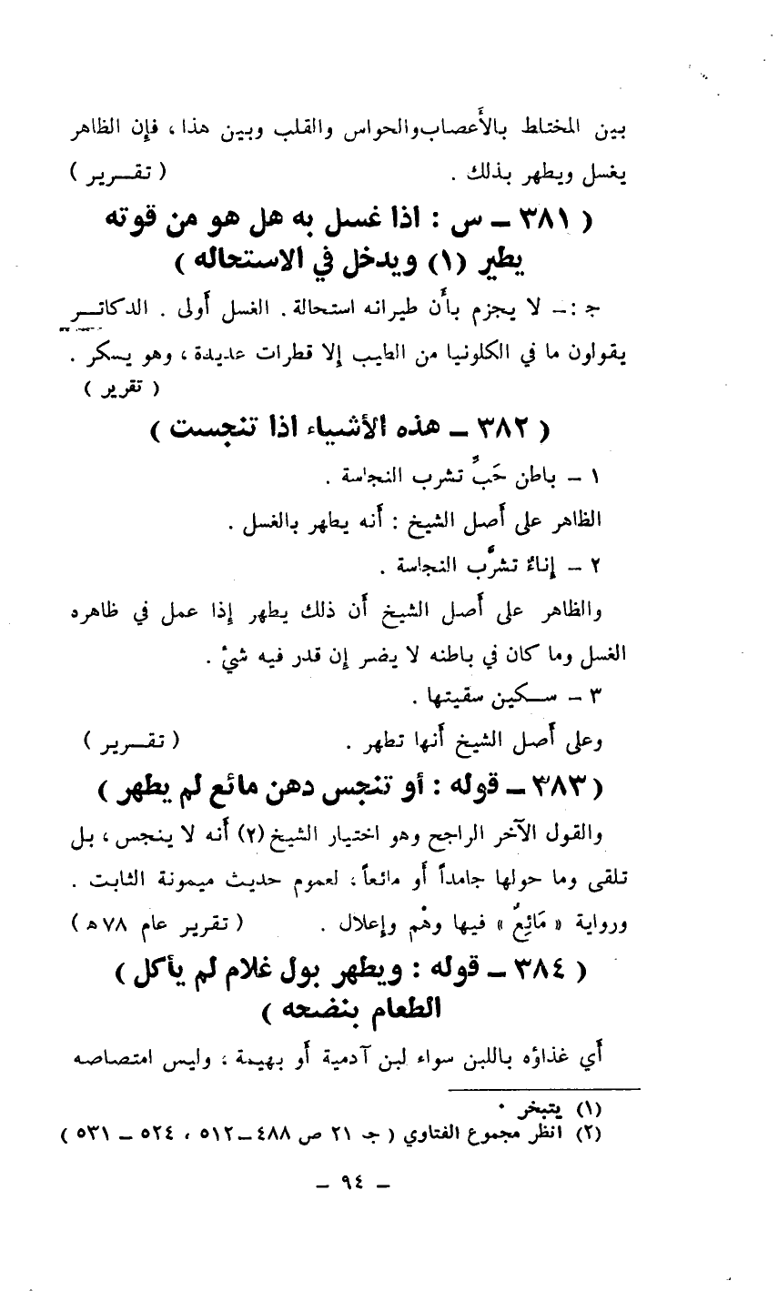 (383- قوله: أو تنجس دهن مائع لم يطهر)