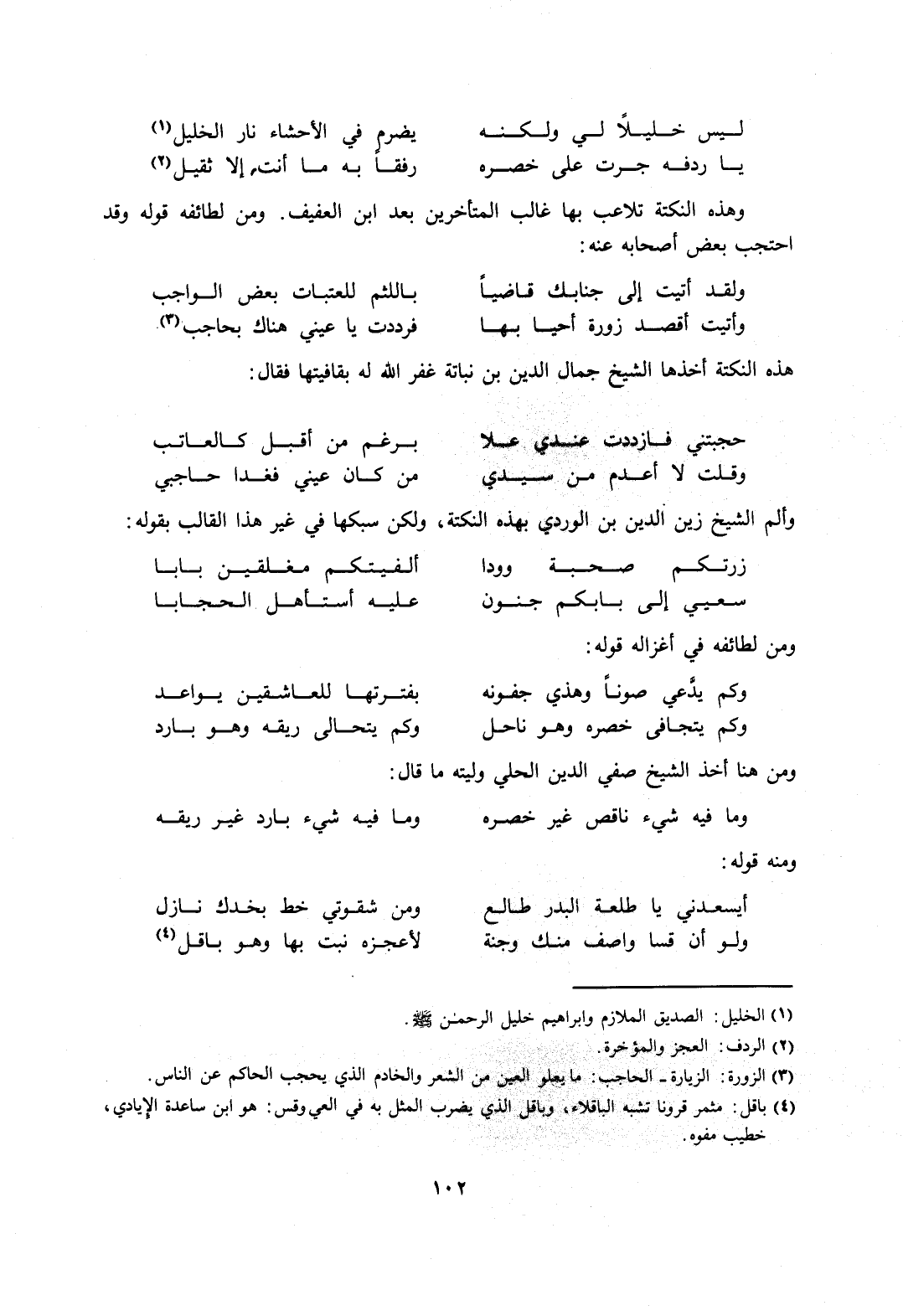 وألم الشيخ زين الدين بن الوردي بهذه النكتة، ولكن سبكها في غير هذا القالب بقوله: