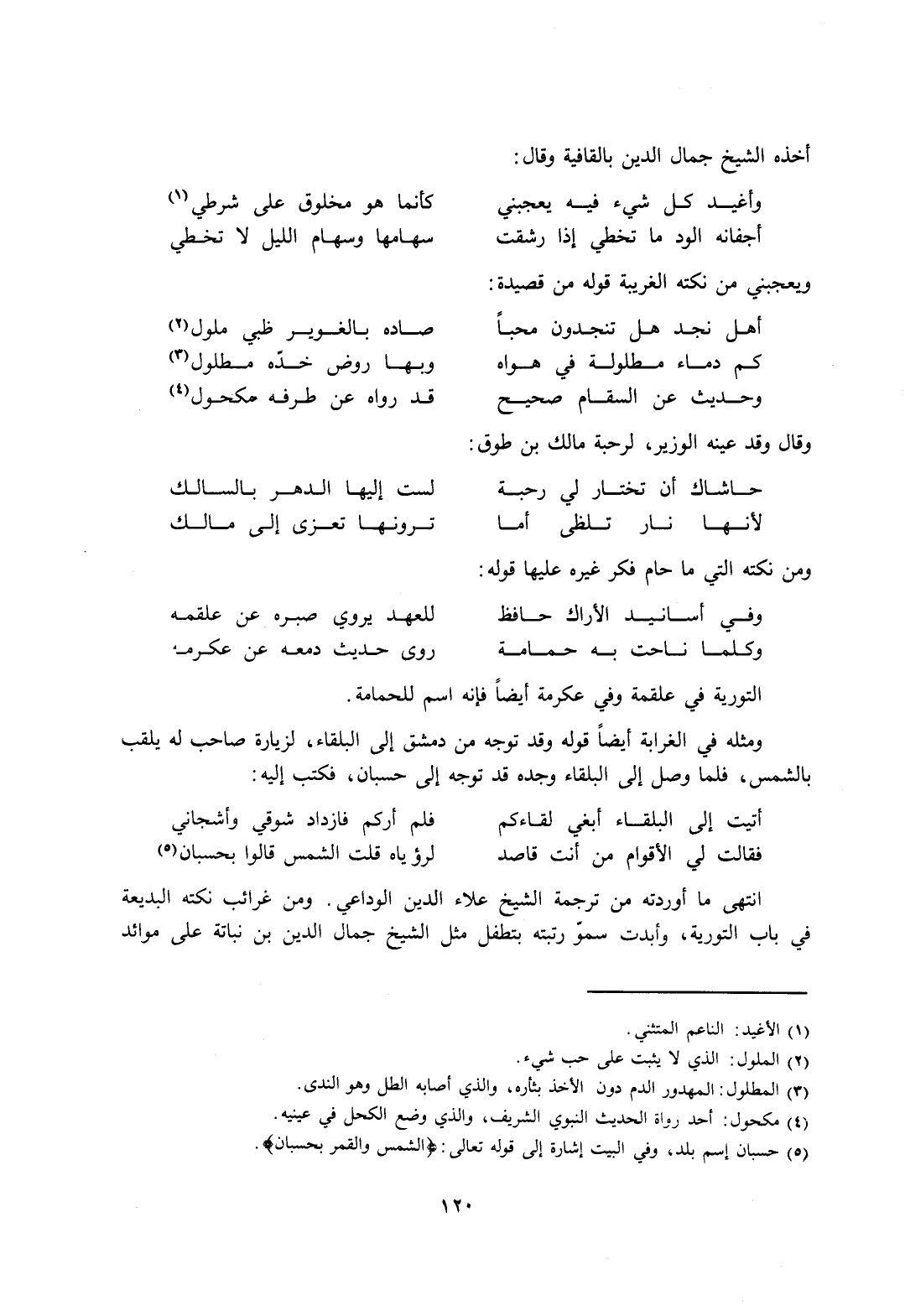 فقالت لي الأقوام من أنت قاصد ... لرؤياه قلت الشمس قالوا بحسبان5