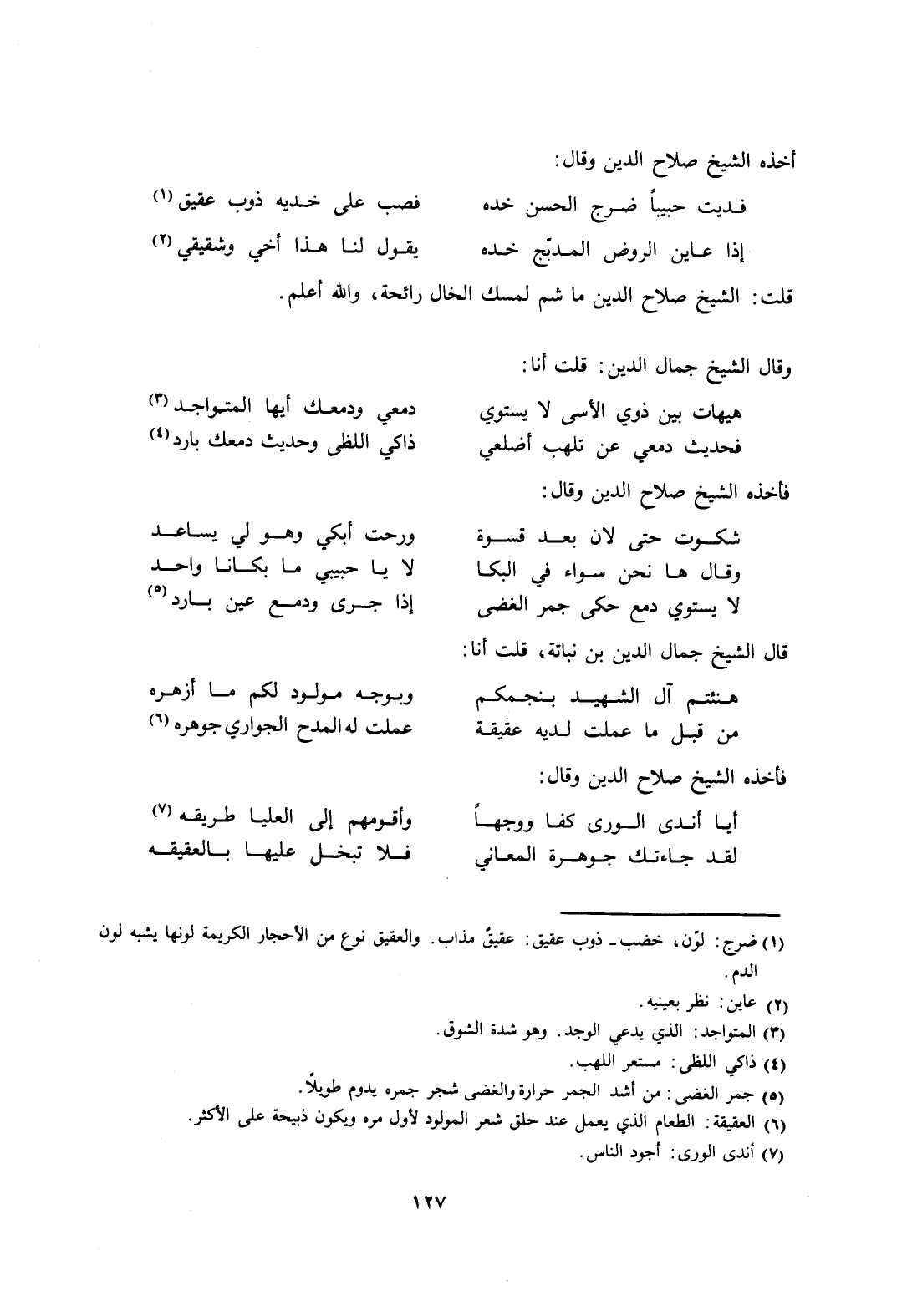 فحديث دمعي عن تلهب أضلعي ... ذاكي اللظى وحديث دمعك بارد4