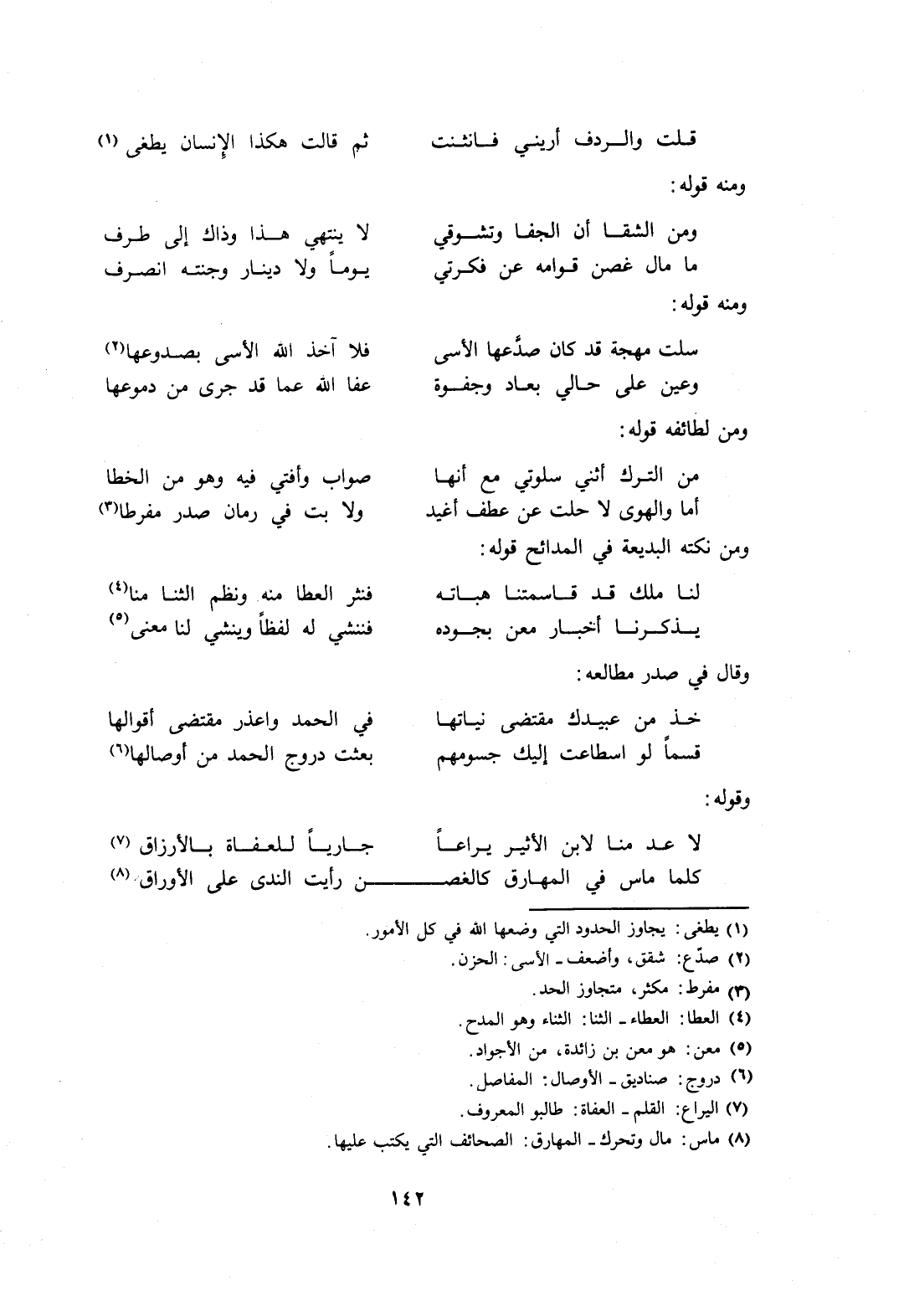 كلما ماس في المهارق كالغصـ ... ـن رأيت الندى على الأوراق8