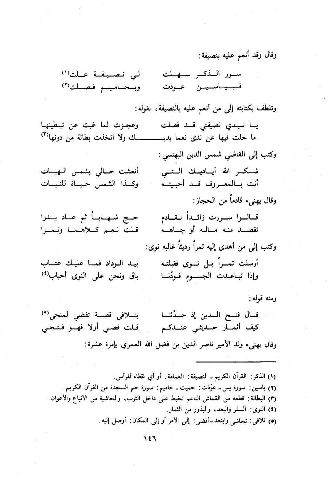 وتلطف بكتابته إلى من أنعم عليه بالنصيفة، بقوله: