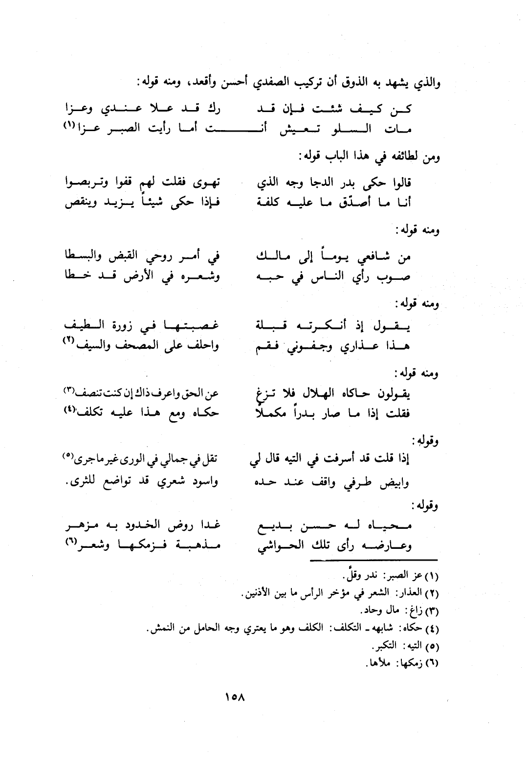 والذي يشهد به الذوق أن تركيب الصفدي أحسن وأقعد، ومنه قوله: