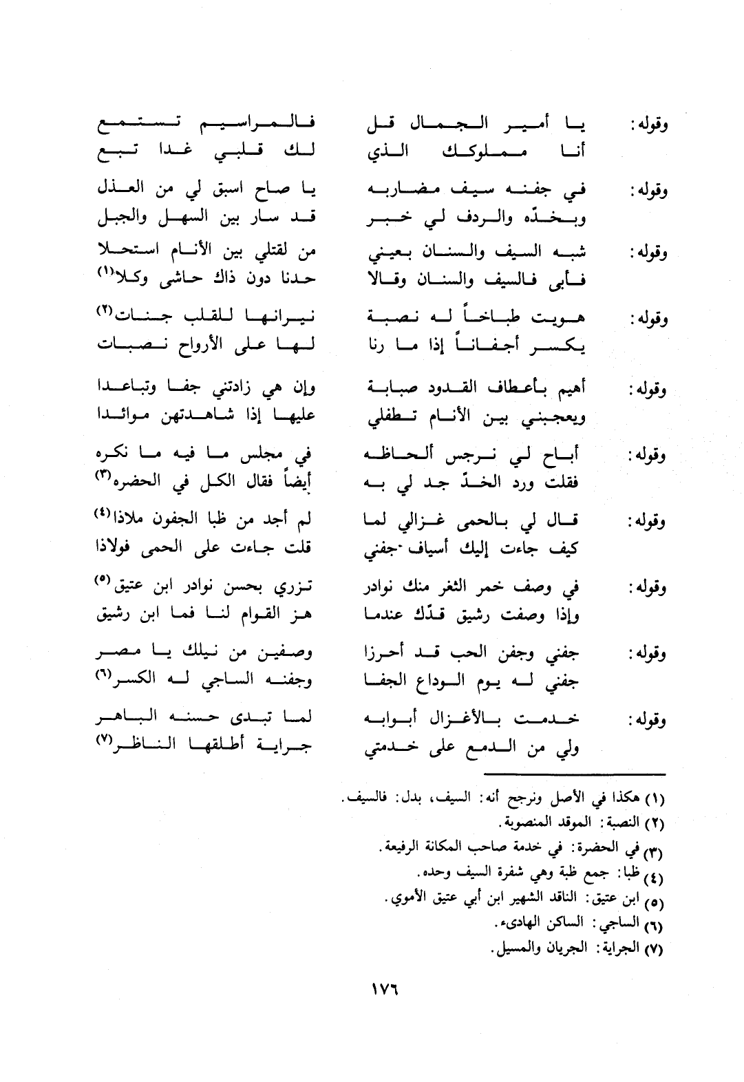جفني له يوم الوداع الجفا ... وجفنه الساجي له الكسر6