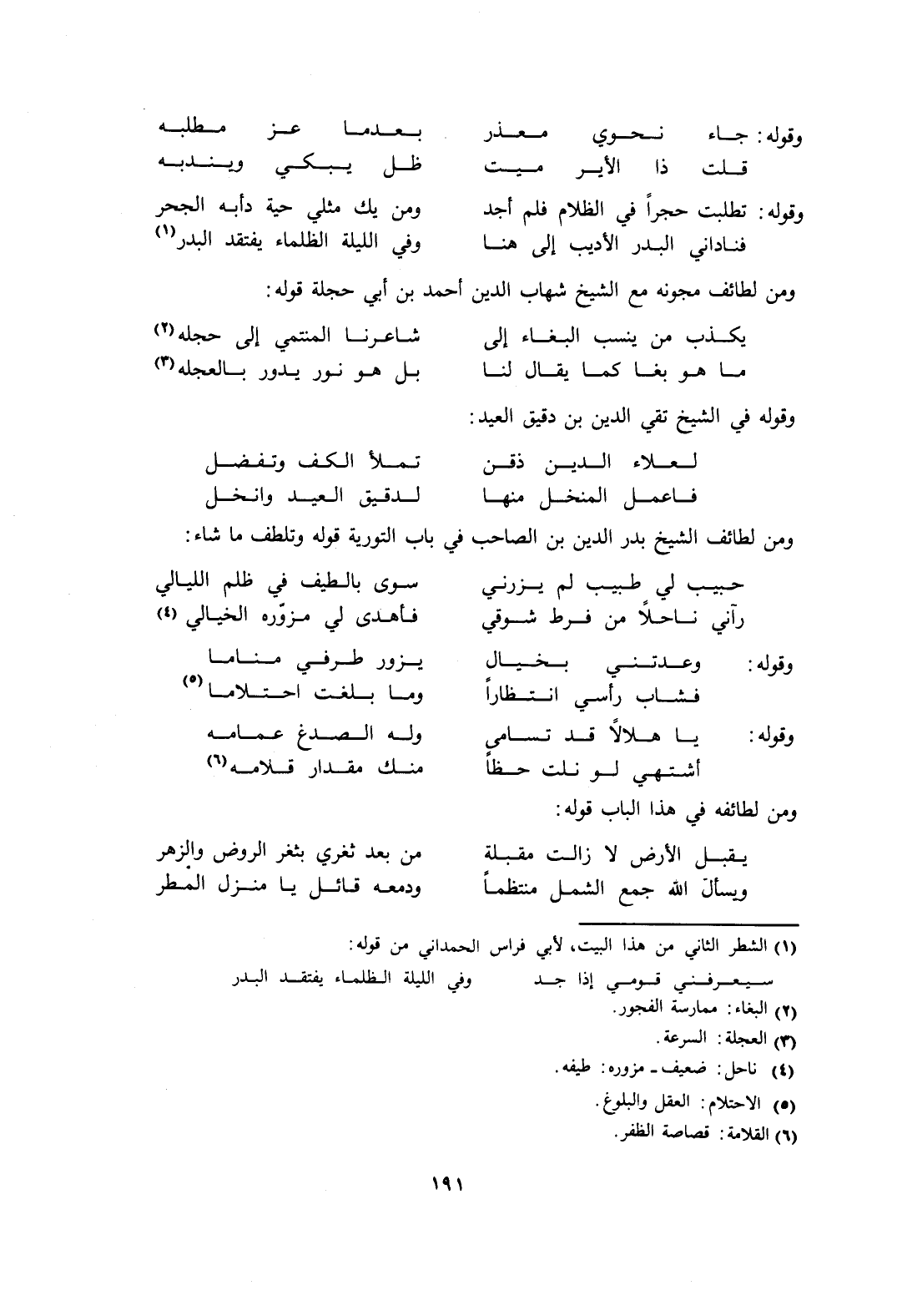 فناداني البدر الأديب إلى هنا ... وفي الليلة الظلماء يفتقد البدر1