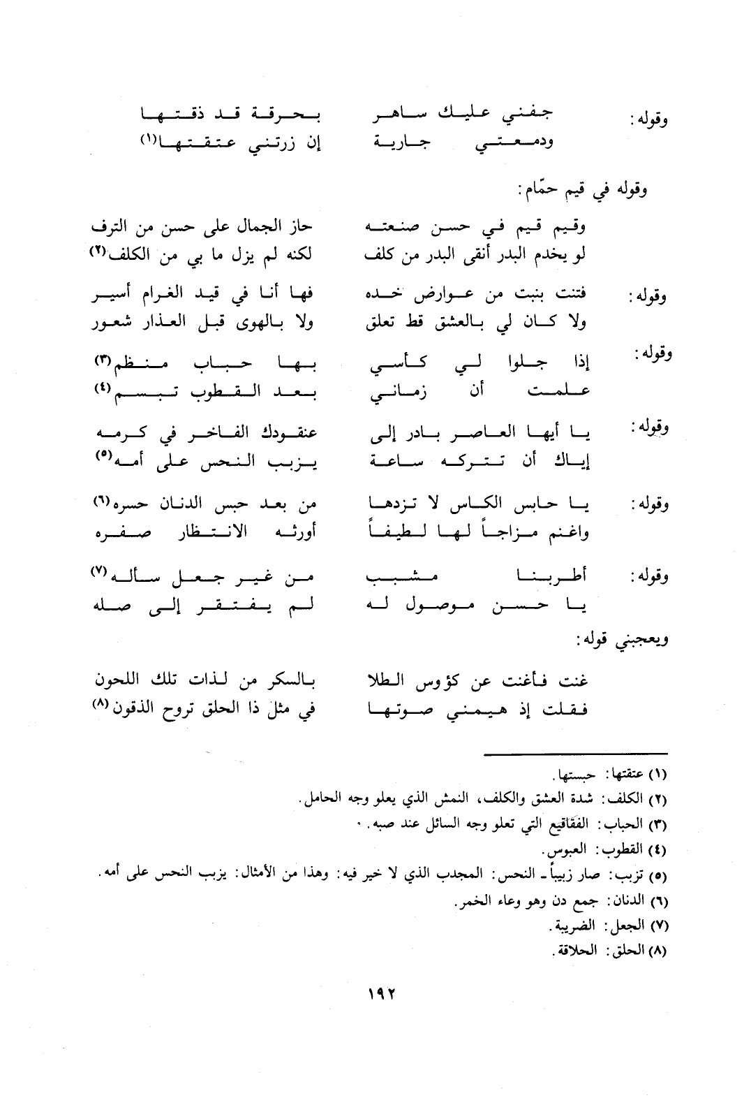 وقوله في قيم حمّام: