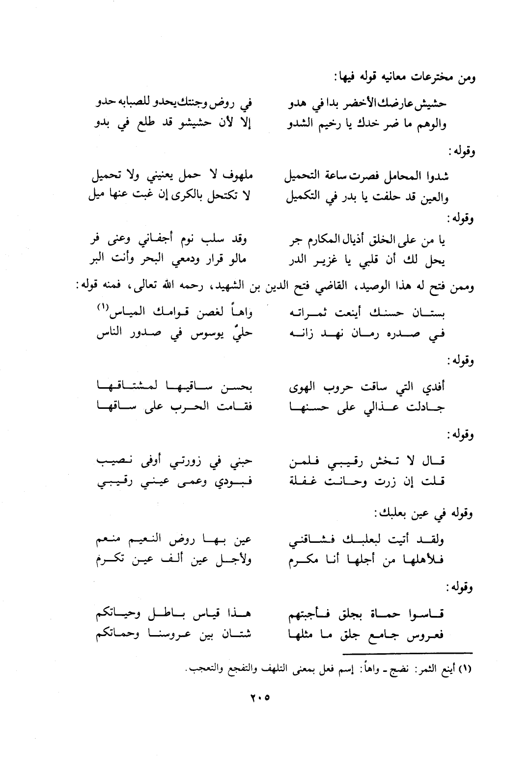 وقوله في عين بعلبك: