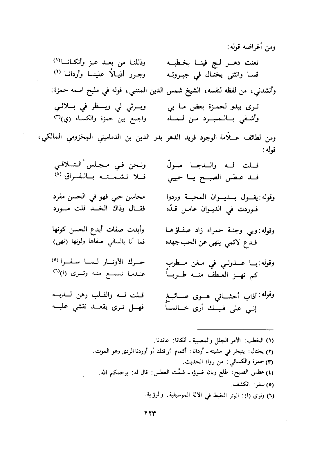 ومن لطائف علّامة الوجود فريد الدهر بدر الدين بن الدماميني المخزومي المالكي، قوله: