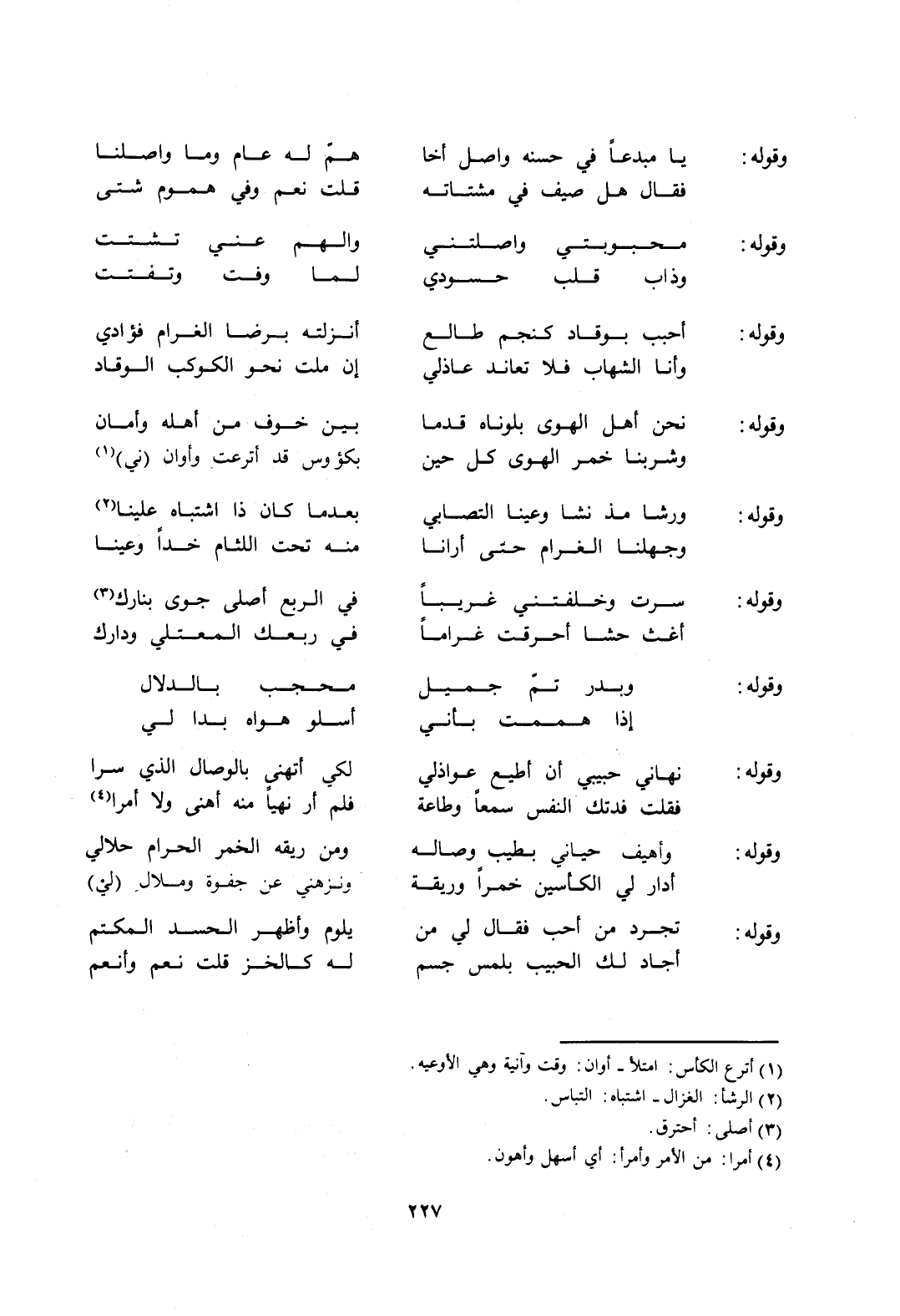 وشربنا خمر الهوى كل حين ... بكئوس قد أترعت وأوان "ني"1
