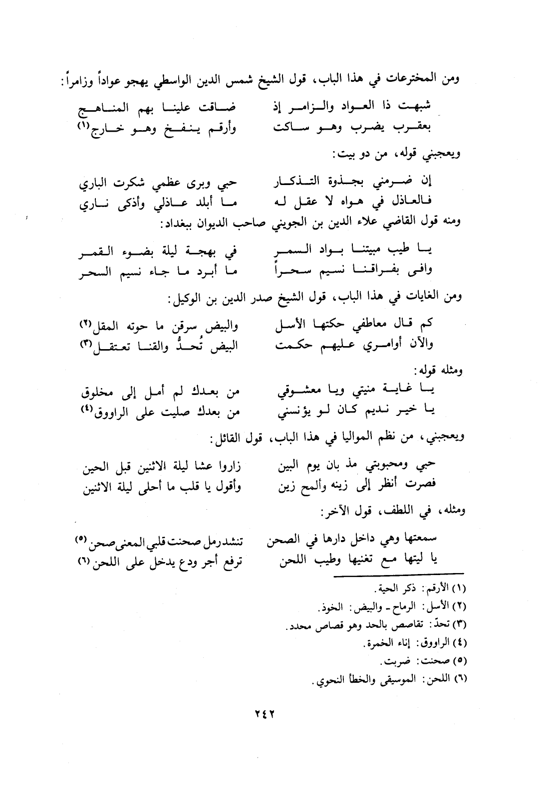 ومن المخترعات في هذا الباب، قول الشيخ شمس الدين الواسطي يهجو عوادًا وزامرًا: