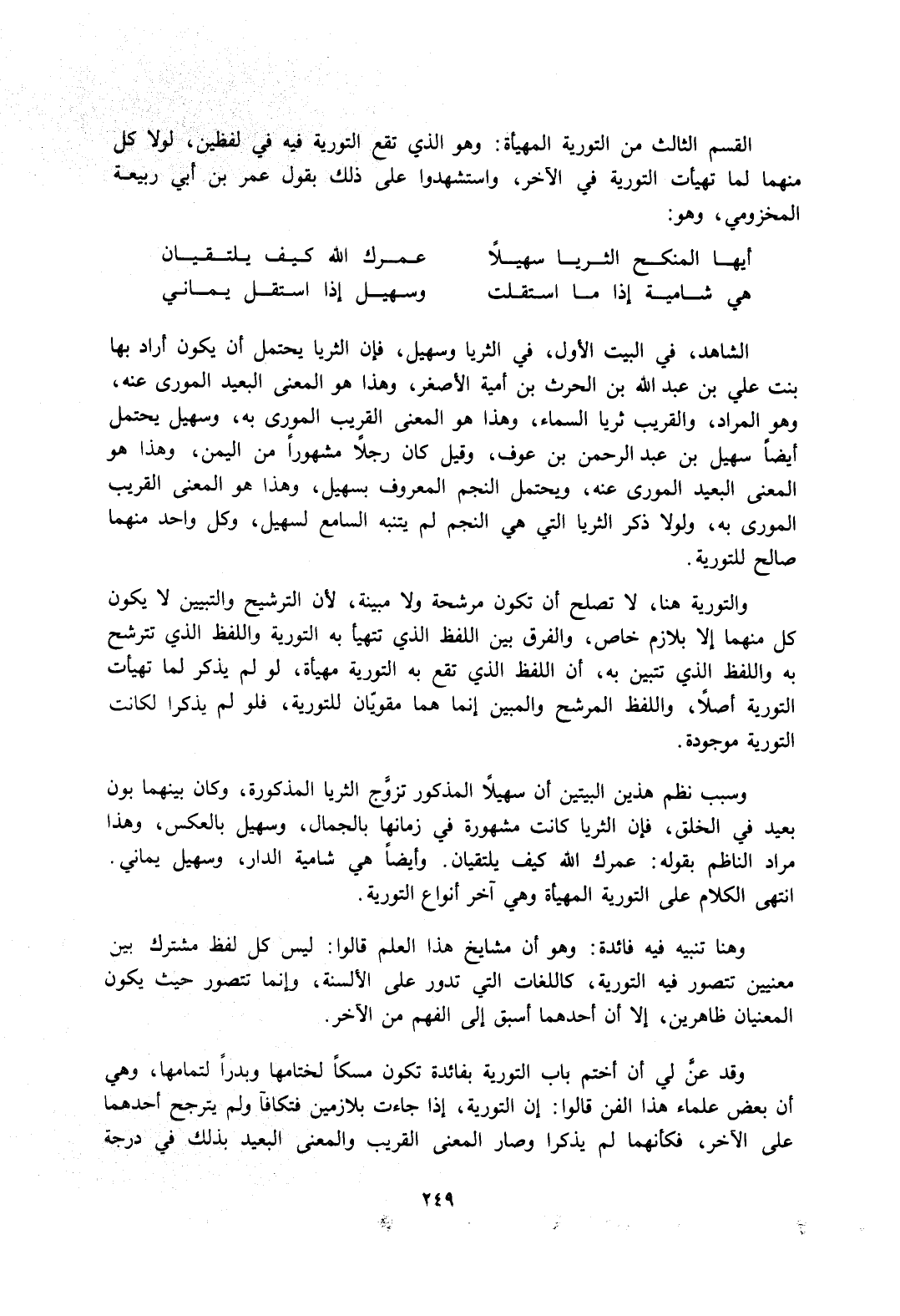 انتهى الكلام على التورية المهيأة وهي آخر أنواع التورية.