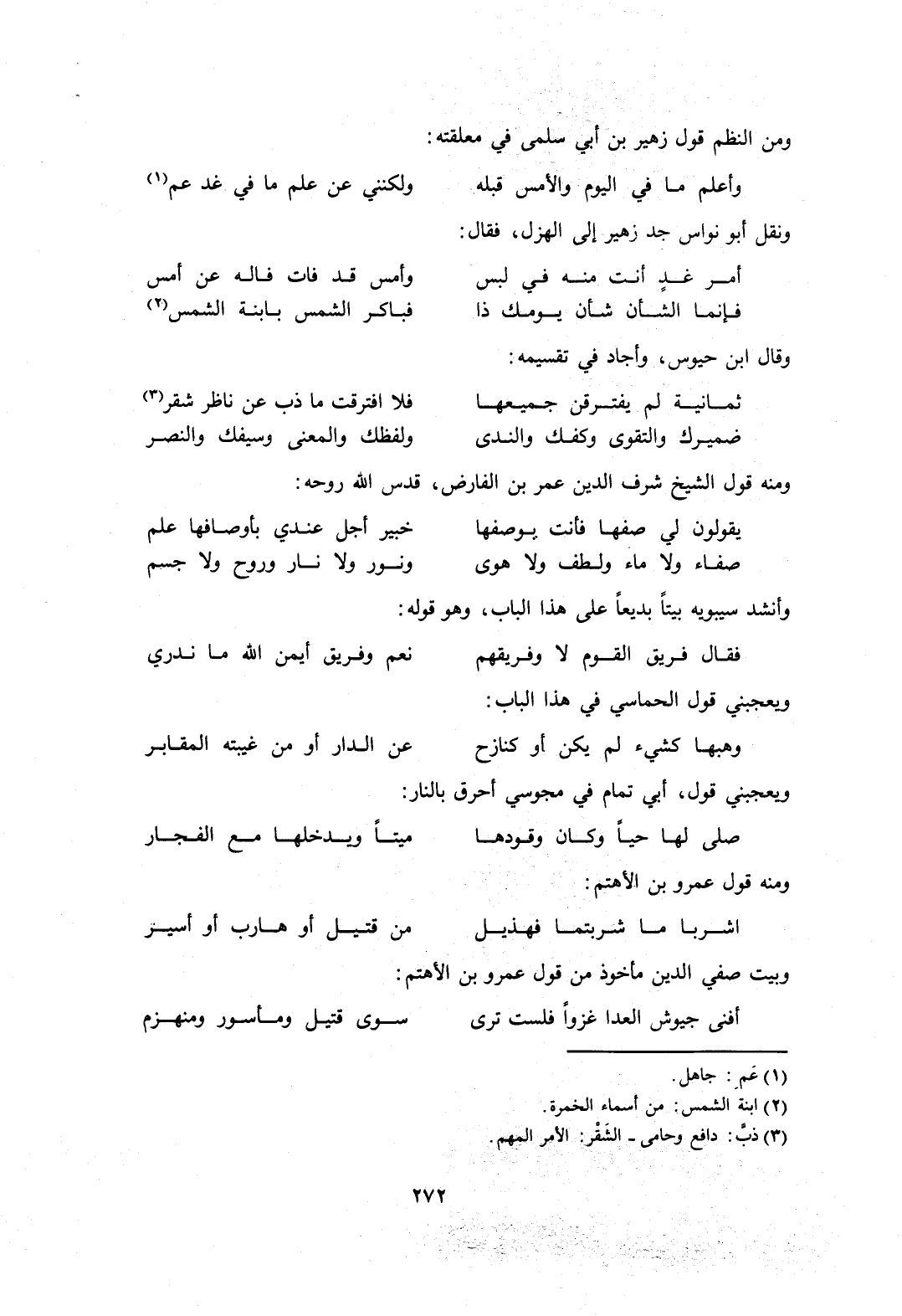 ومن النظم قول زهير بن أبي سلمى في معلقته: