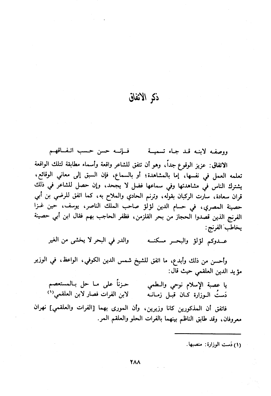فاتفق أن المذكورين كانا وزيرين، وأن المورى بهما: "الفرات والعلقمي" نهران معروفان، وقد طابق الناظم بينهما بالفرات الحلو والعلقم المر.