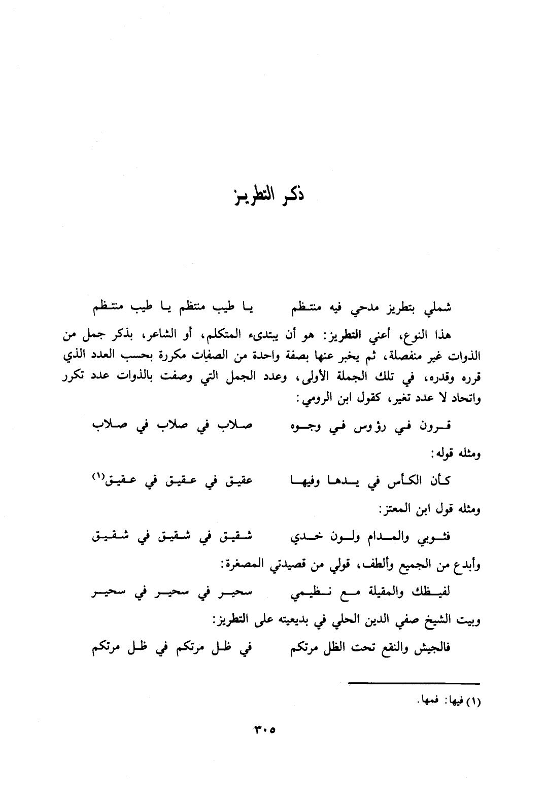 وبيت الشيخ صفي الدين الحلي في بديعيته على التطريز: