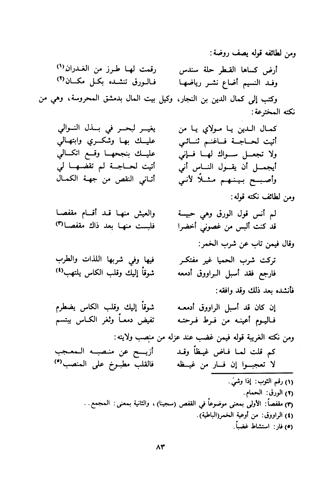 وكتب إلى كمال الدين بن النجار، وكيل بيت المال بدمشق المحروسة، وهي من نكته المخترعة: