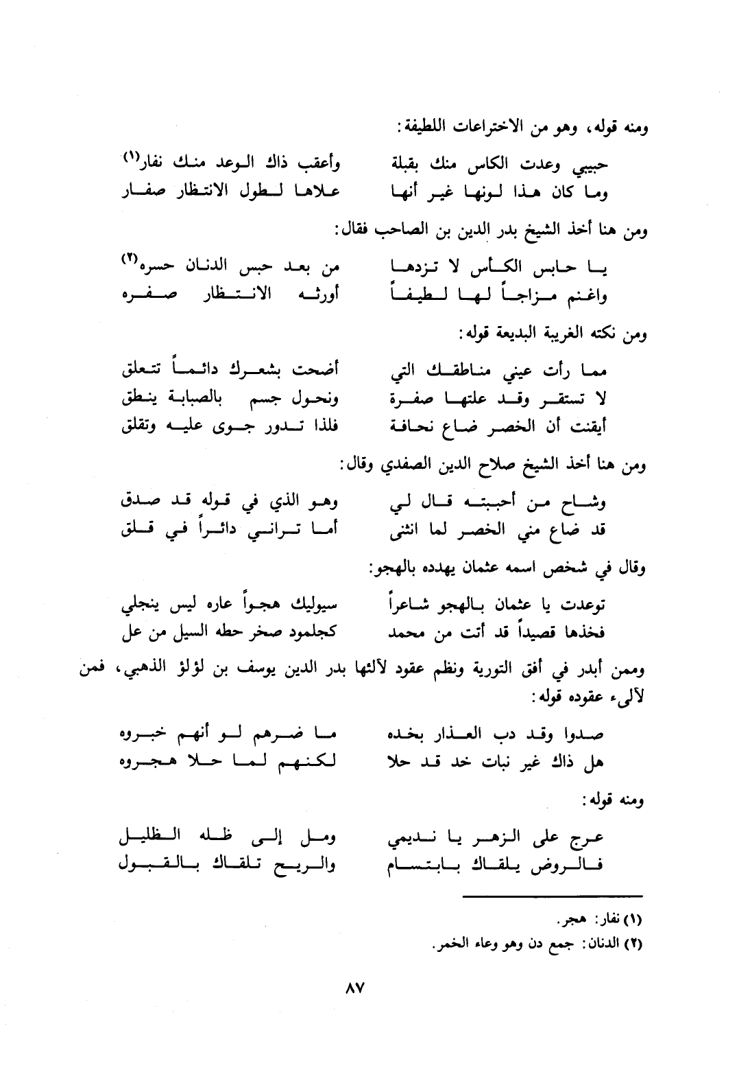 ومن هنا أخذ الشيخ صلاح الدين الصفدي وقال: