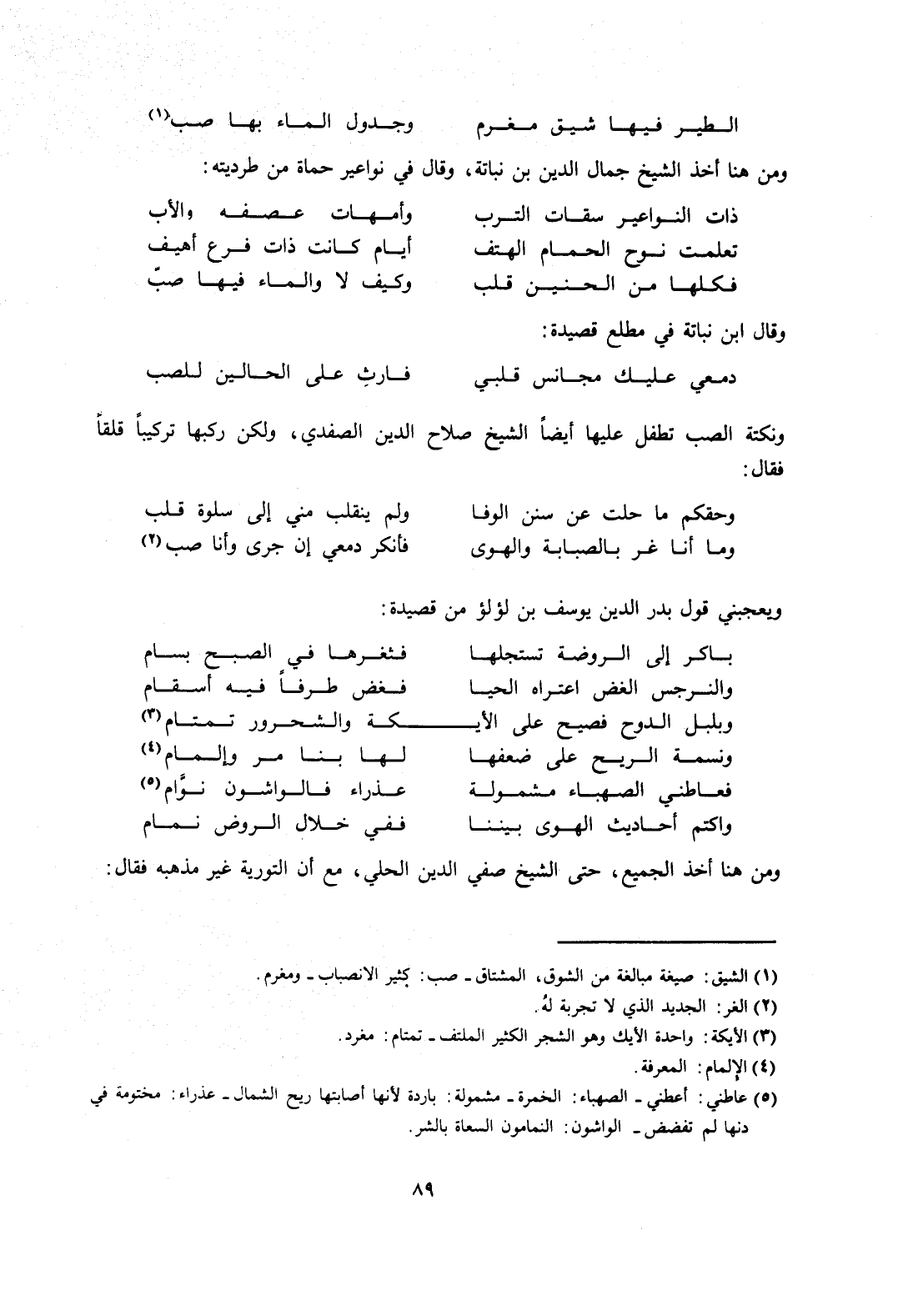 ومن هنا أخذ الشيخ جمال الدين بن نباتة، وقال في نواعير حماة من طرديته: