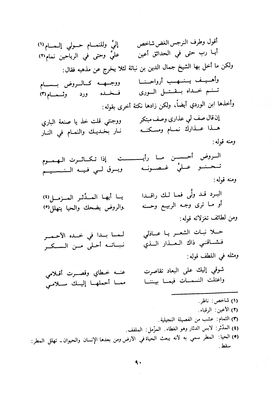 ولكن ما أخل بها الشيخ جمال الدين بن نباتة لئلا يخرج عن مذهبه فقال: