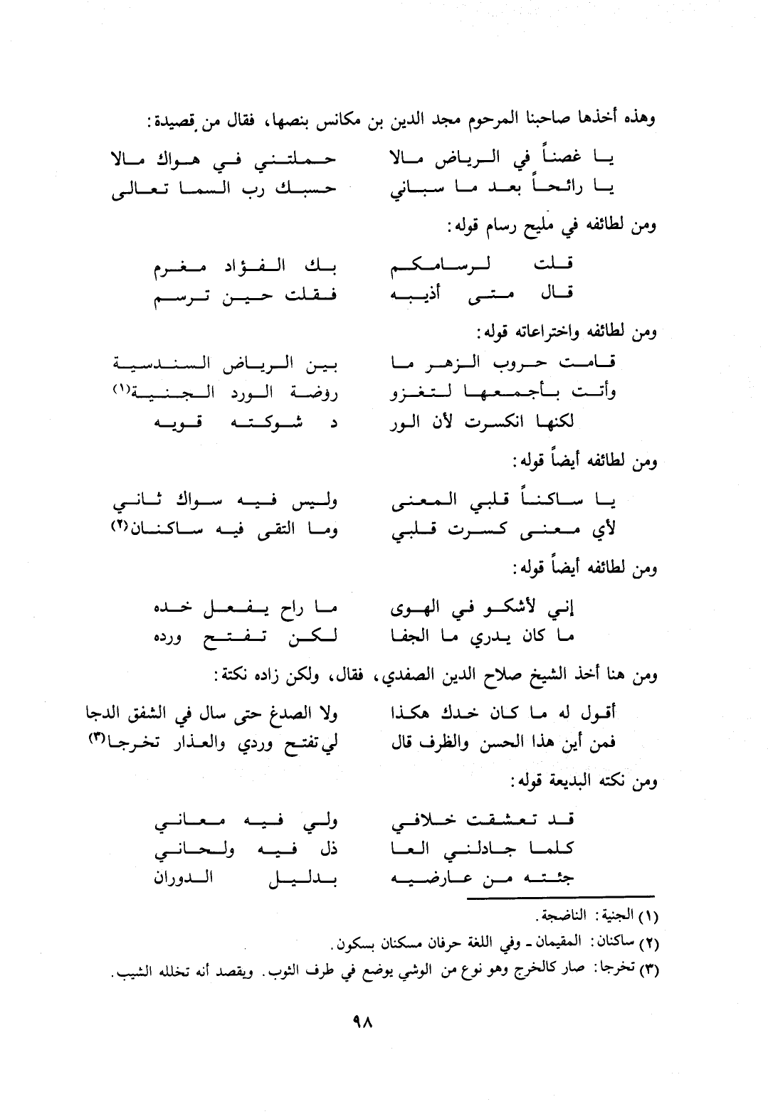 ومن هنا أخذ الشيخ صلاح الدين الصفدي، فقال، ولكن زاده نكتة: