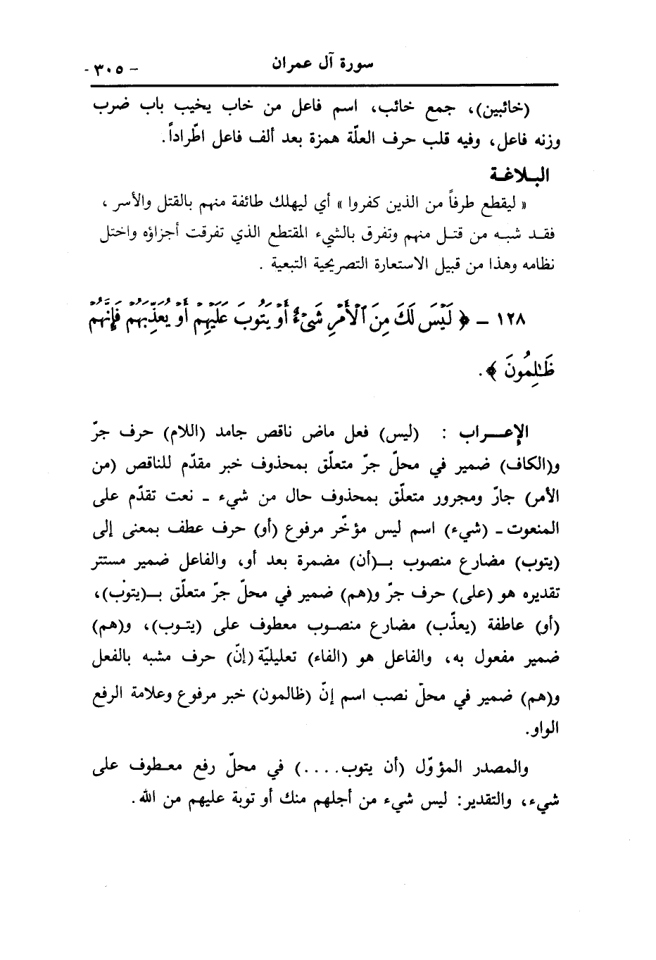 (3) على حذف مضاف أي: إلّا كلام الذين ظلموا، ويجوز أن يكون بدلا من الناس في محلّ جرّ.. وابن هشام يجعل الاستثناء منقطعا ف (إلا) بمعنى لكن و (الذين) مبتدأ خبره محذوف أي لهم الحجّة الباطلة أو المجادلة الباطلة.