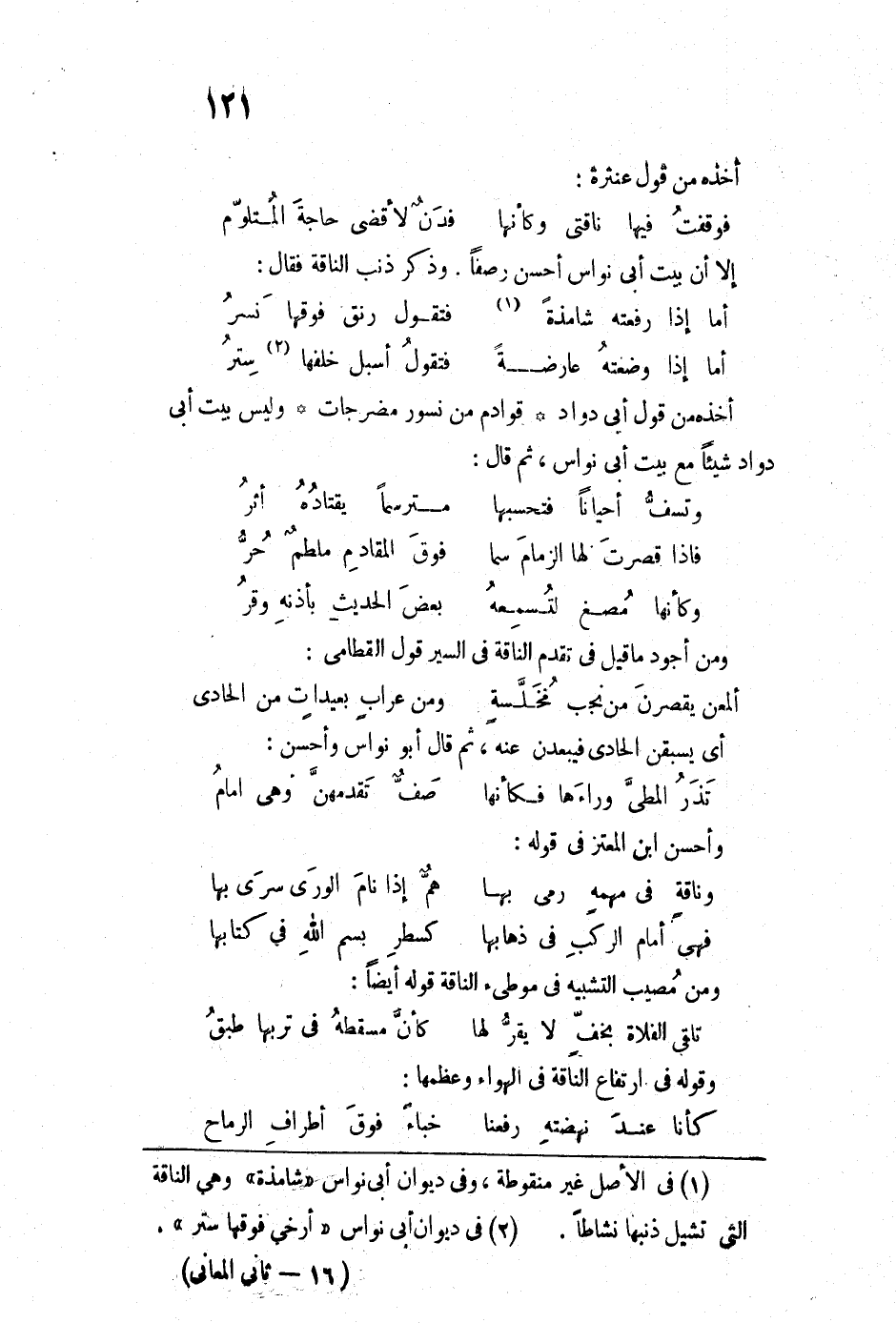 إلا أن بيت أبي نواس أحسن رصفاً. وذكر ذنب الناقة فقال: