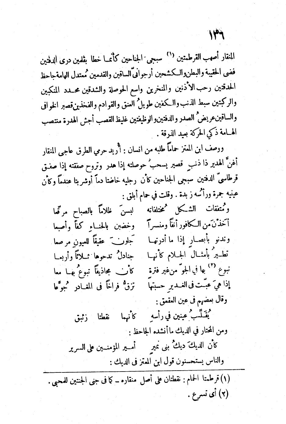 والناس يستحسنون قول ابن المعتز في الديك: