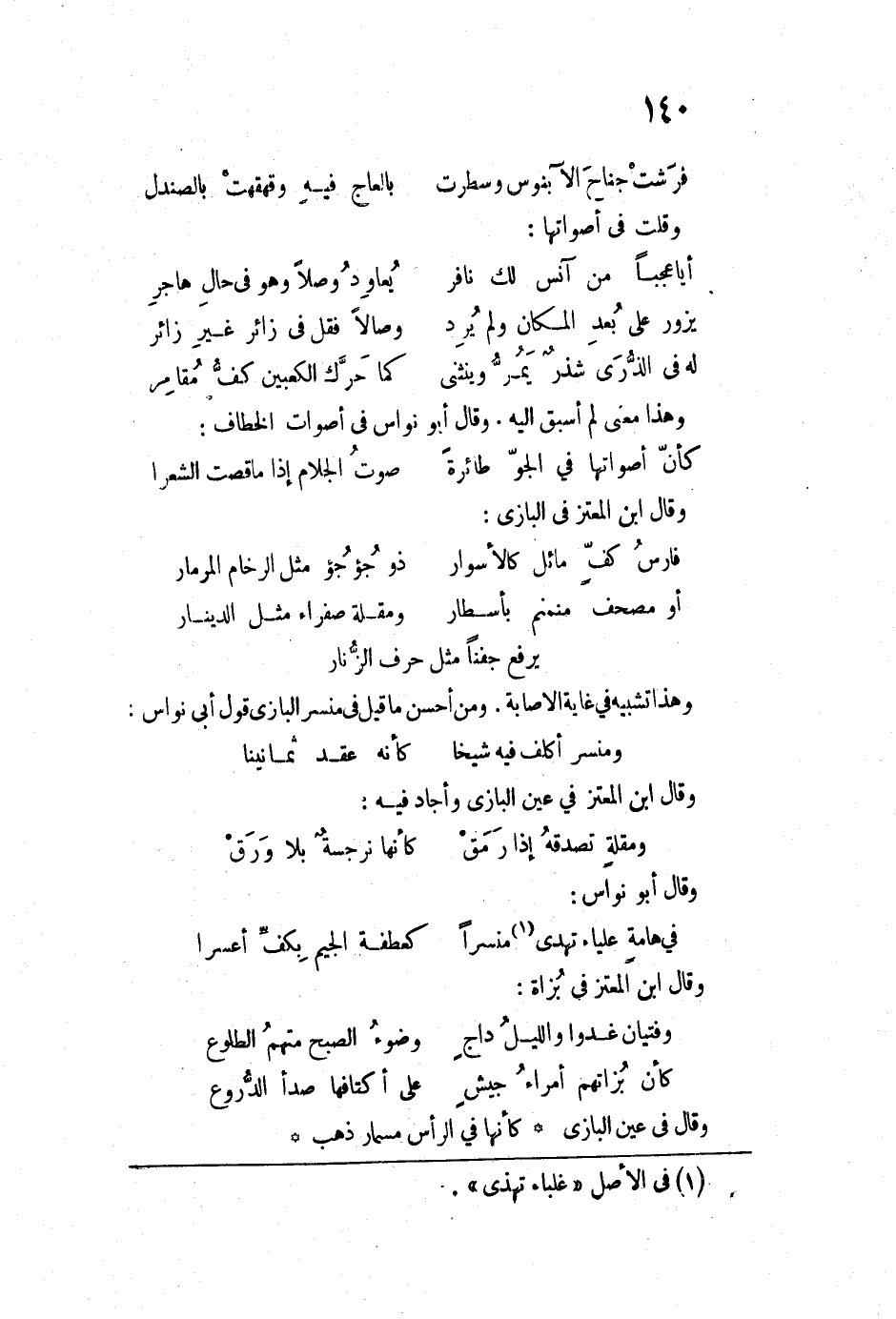 وهذا تشبيه في غاية الاصابة. ومن أحسن ما قيل في منسر البازي قول أبي نواس: