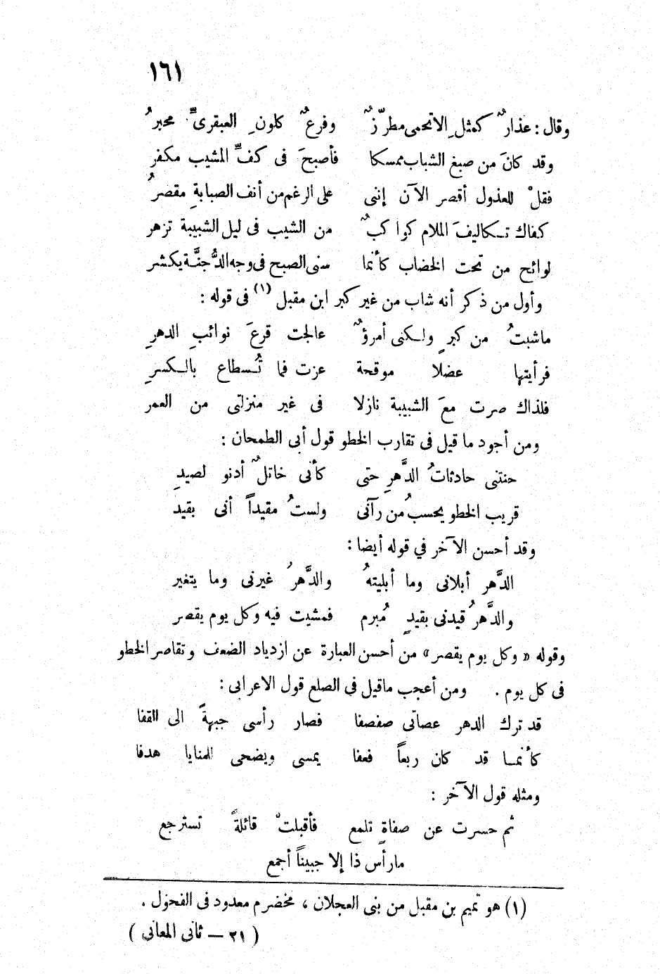 (والدهرُ قيّدني بقيدِ مُبرَمٍ ... فمشيْتُ فيه وكلِّ يومٍ يقصرُ)