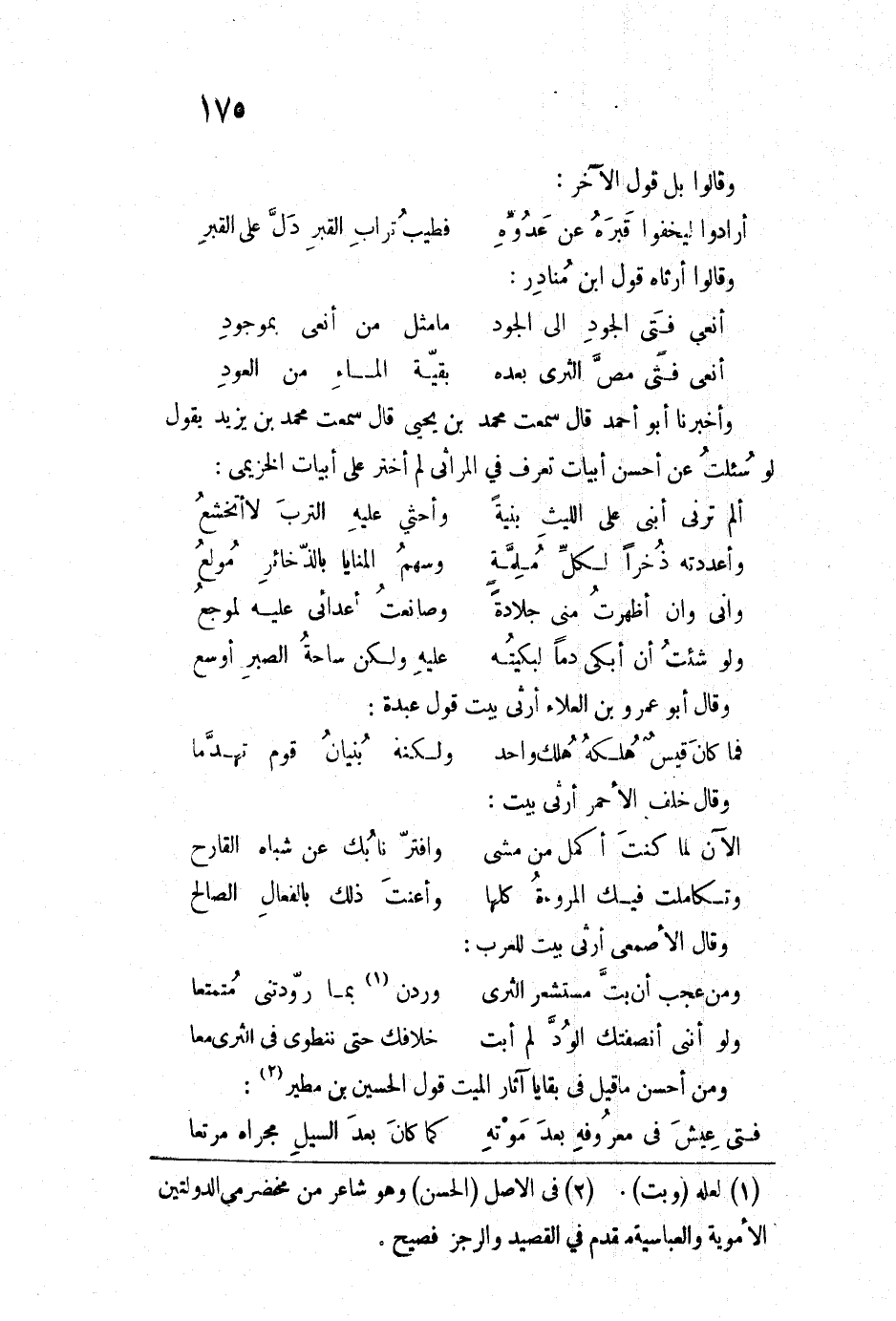 ومن أحسن ما قيل في بقايا آثار الميت قول الحسين بن مطير: